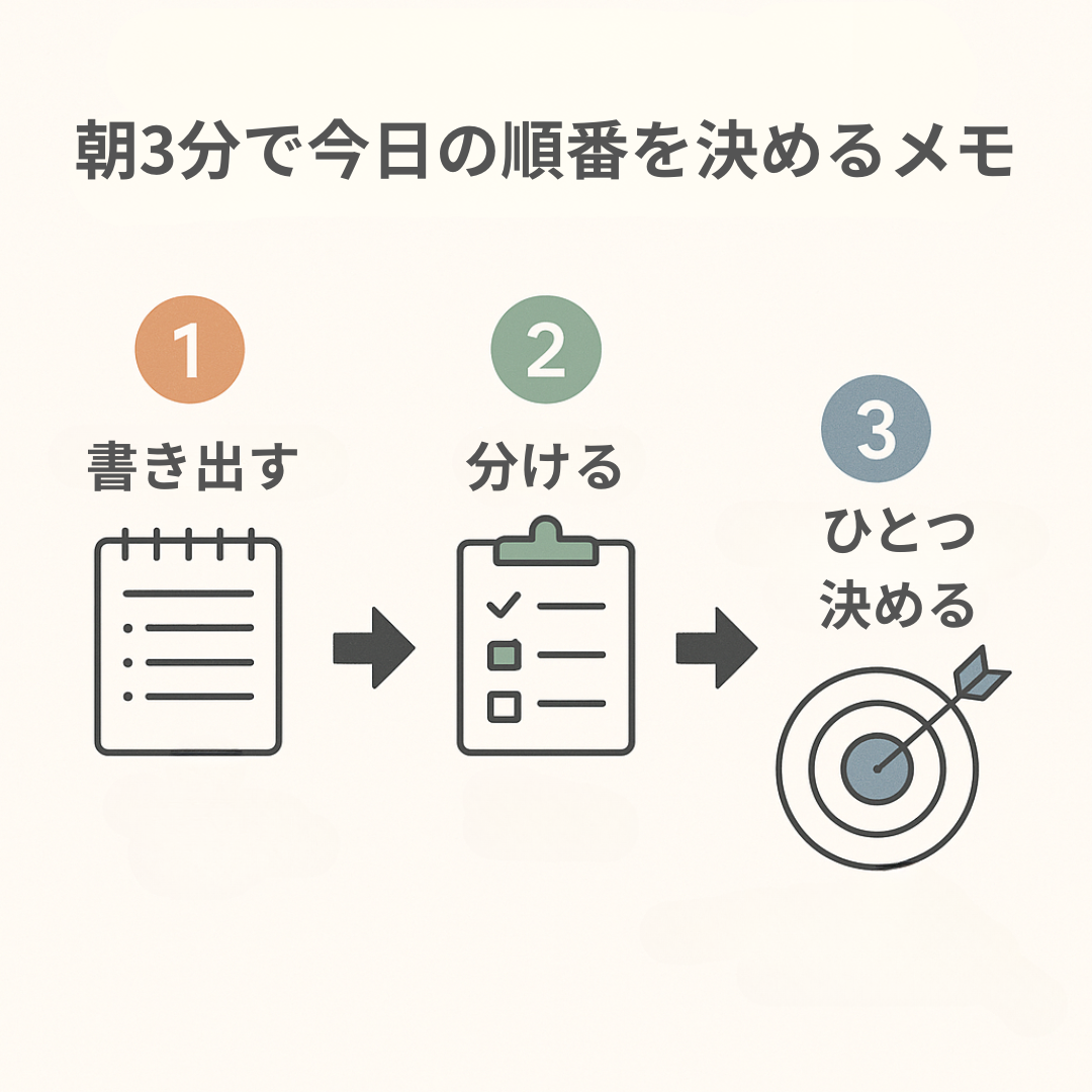 📝 朝3分で“今日の順番”が決まる 思考整理メモ|迷わない1日の作り方